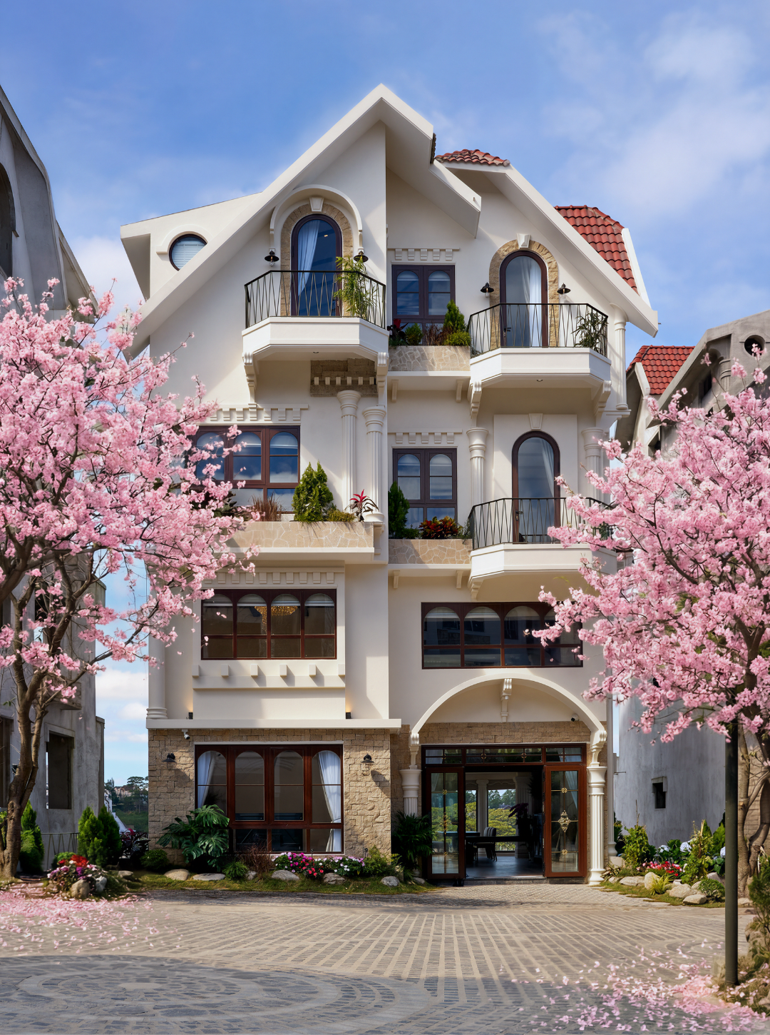BỘ SƯU TẬP BIỆT THỰ PHÁP GIỮA VƯỜN HOA MAI ANH ĐÀO ĐẦU TIÊN TẠI VIỆT NAM